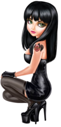 Goth Chick In Black Outfit Kneeling